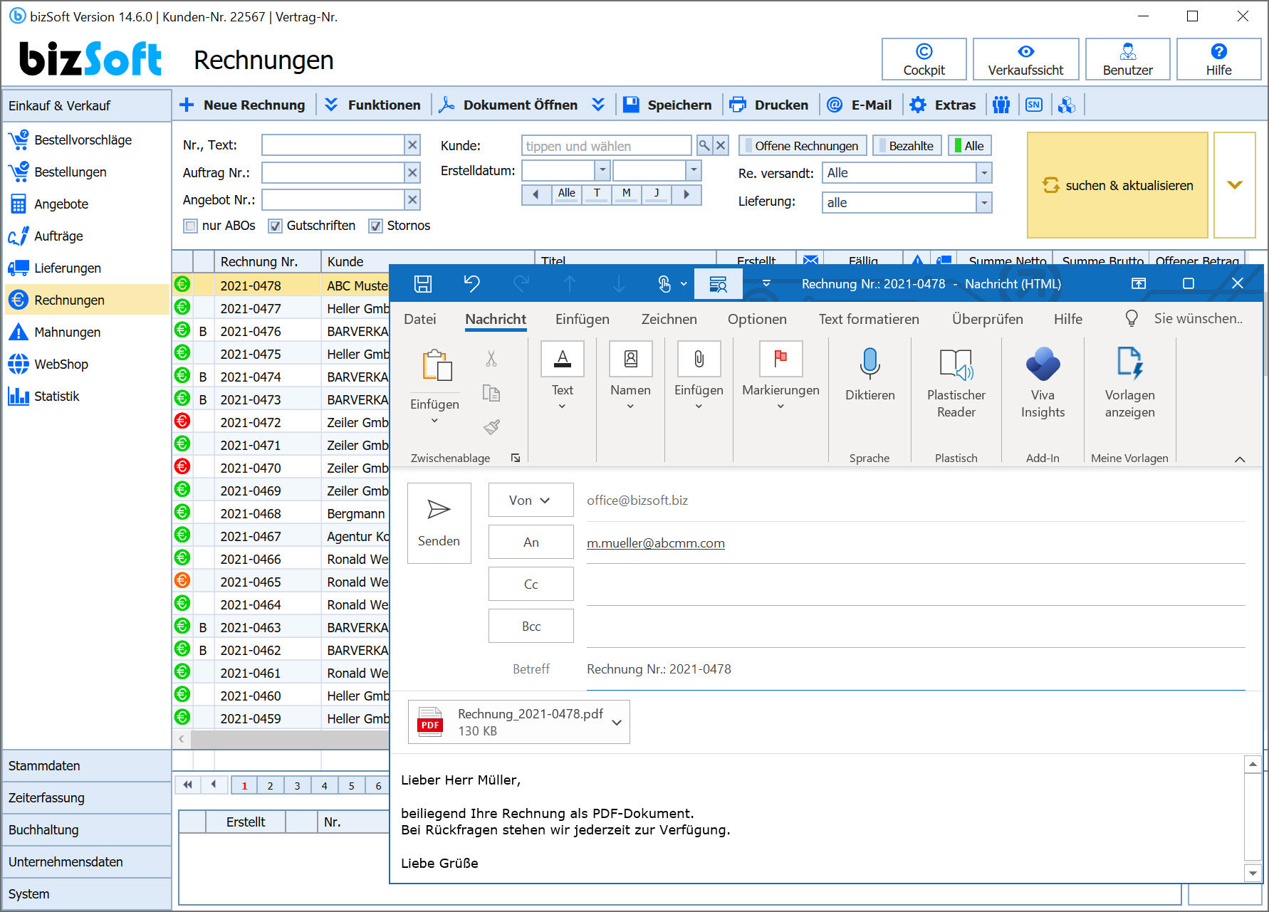 Mit bizSoft Rechnungen in Sekunden erstellen